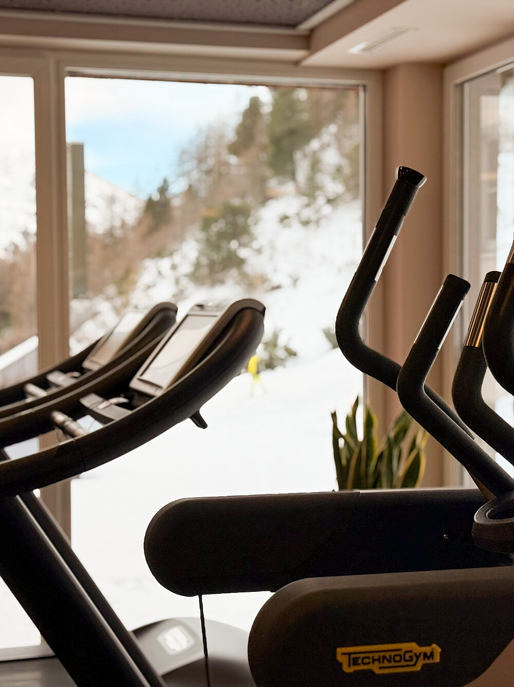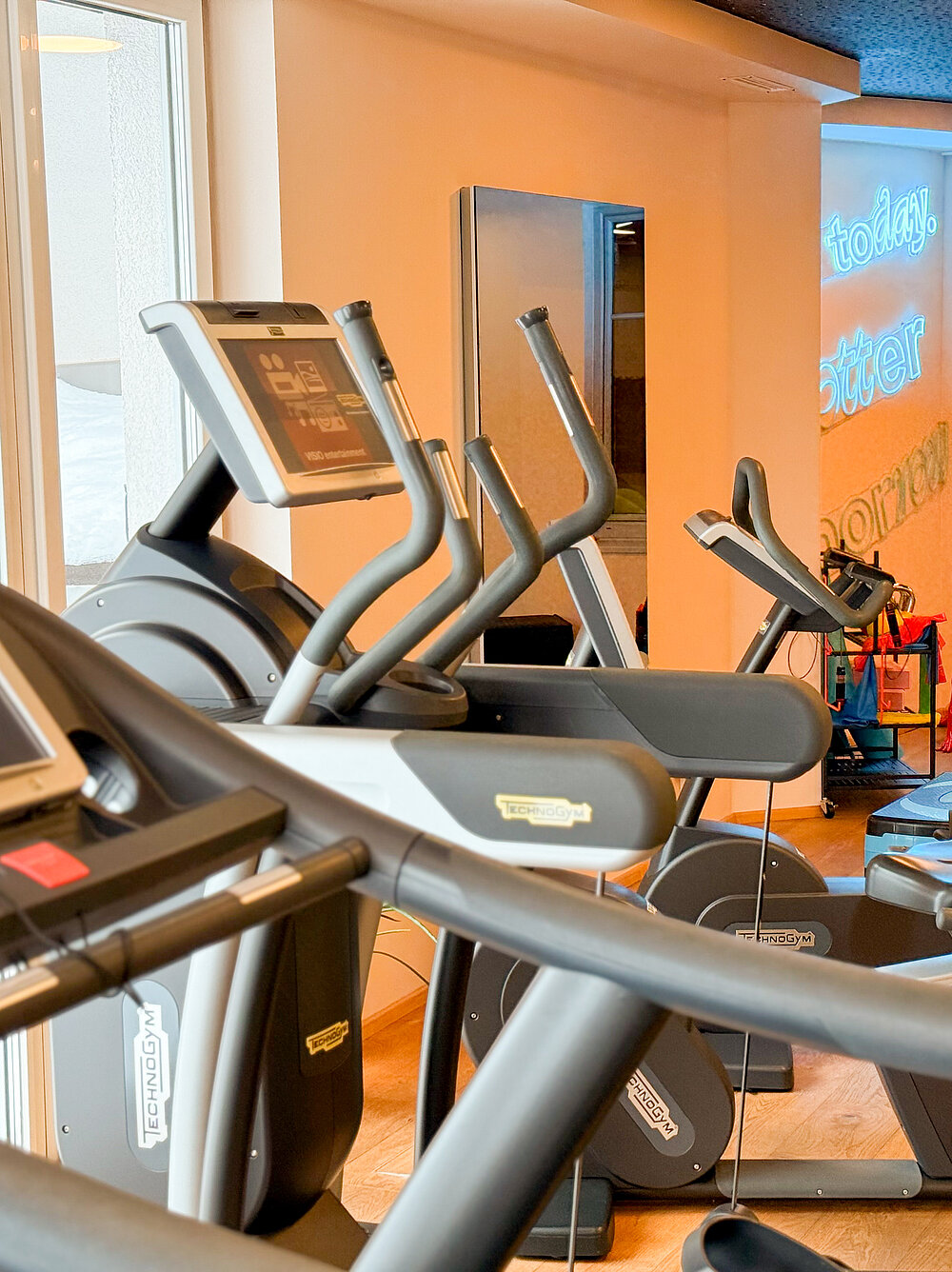 Muckibude im letzten Kellerwinkel? Mon dieu! Das war gestern – in unserem 4*S Wellnesshotel in Obertauern warten über 100 lichtdurchflutete Quadratmeter mit Pistenpanorama auf ambitionierte Gym-Fans. Neueste Techno Gym-Geräte machen Ausdauer-Junkies oder Power-Lifter happy. Und für alle, die vom Alleine-Auspowern genug haben, arrangieren wir gerne eine Trainingseinheit im Hotel Enzian mit professionellen Trainer:innen.